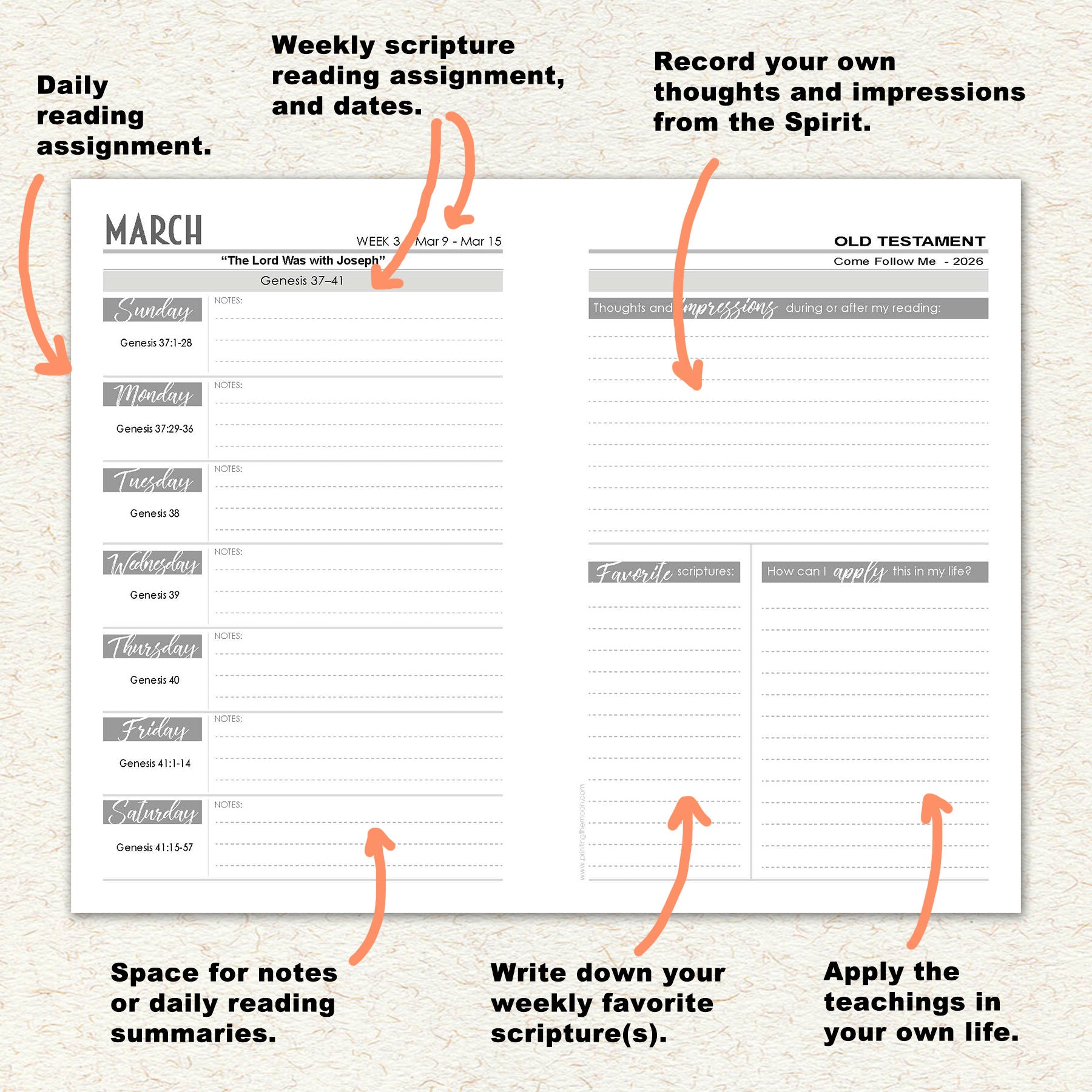 OLD TESTAMENT, Come Follow Me 2026, Study Guide, Scripture Study Journal, Temple Cover, LDS Printed Notebook
